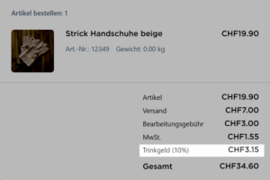 Tipping is voluntary and done directly during the checkout process. You can choose between predefined percentages or fixed amounts. This makes it as simple and transparent as possible for your customers.